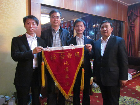 在此次會議上舉行了“三比三看”活動首面流動紅旗頒發(fā)儀式,檸條塔調(diào)運部以“管理規(guī)范、團隊和諧、服務優(yōu)質、環(huán)境整潔”贏得了廣大司機、客戶及礦方的認可和肯定,從而獲得了首面流動紅旗。檸條塔調(diào)運部主管王鵬(。┰跁习l(fā)表了獲獎感言:在廣通神木分公司全力沖刺2012年各項目標任務的關鍵時期,分公司授予檸條塔調(diào)運部的這面綜合管理流動紅旗,不僅激勵了檸條塔調(diào)運部全體員工的工作熱情和工作積極性,更是鞭策了廣通神木分公司的全體員工。我們將以此為契機,立足本職,學習借鑒兄弟部門的先進經(jīng)驗,不斷改進自己的工作方式、方法,力爭使檸條塔調(diào)運部的各項工作能再上新臺階。